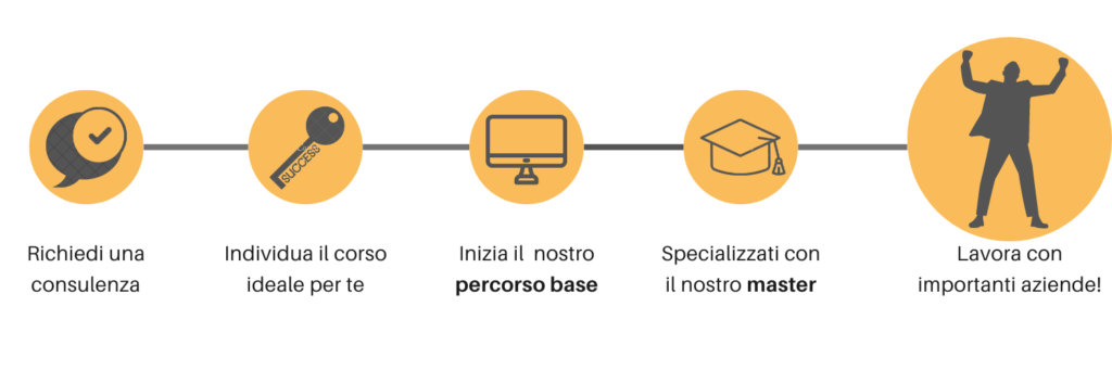 Un team di esperti ti seguirà in orientamento alla scelta del percorso, durante il suo svolgimento e al termine dello stesso per un buon match con le aziende partner.